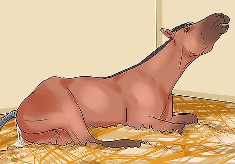 Assist the foal to the ground if the mare is standing during delivery. Mares usually foal lying down, but occasionally one will stand. The foal can be seriously injured if it falls during birth, so, if it’s possible, close by to catch it and gently lower it to the ground. As always, take care to avoid the mare’s hooves so you don’t get kicked.