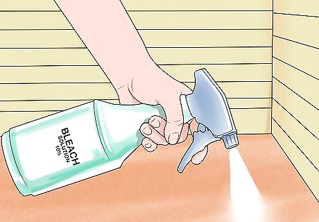 Disinfect the birthing stall thoroughly if you're using one. To prepare the stall, take everything out, including the bedding, and disinfect the entire stall with a mild antiseptic, like 2% chlorhexidine or a 10% bleach solution. When you’re finished, rinse away the disinfectant and let the stall air-dry completely, then cover the floors with wheat straw. Covering the floor with straw before it's dry can lead to dangerous mold growth. Avoid using wood shavings as bedding. These can cling to the wet newborn and may block its nose and prevent it from breathing. If you’re moving the mare to a new stall, give her about 3 weeks to get used to it and build up antibodies to any germs in the environment.