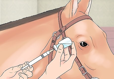 Vaccinate the mare about 1 month before she foals. Of course, as with any vaccinations, you should ask your vet about the specifics. However, it’s generally a good idea to vaccinate your mare against tetanus, influenza, rabies, West Nile virus, and other common diseases. These vaccinations will protect the health of both the mare and the foal. Tip: Ask your vet to check your mare to see whether she's had a Caslick’s procedure, which is a surgery to correct a common problem that leads to vaginal infections. If she has, the sutures will need to be removed from her labia about a month before foaling.