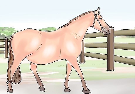 Check the mare daily for signs of labor, like a swollen vulva or teats. In the days before your mare gives birth, her body will start to prepare for the delivery, even if she hasn’t actively gone into labor yet. Look around the mare’s vaginal area to check if her vulva is swollen. Also, look under her belly to check for swollen teats, and check whether the area around the base of the mare’s tail seems more prominent. The signs typically indicate that delivery is only a few days away. You may also notice some clear discharge around the mare’s vulva, which is a normal sign of impending labor. If you notice a thick, yellowish secretion coming from your horse’s teats, this is called “waxing,” and it’s perfectly normal. The mare is producing colostrum, which is a special antibody-rich milk for newborn foals. Typically, the foal will be born within a day of this occurring, but it may take up to 4 days. Call your vet if you notice the mare leaking a lot of milk from her udders. It could be a sign of a problem with the pregnancy, but even if everything's fine, your vet might want you to collect and freeze the milk.
