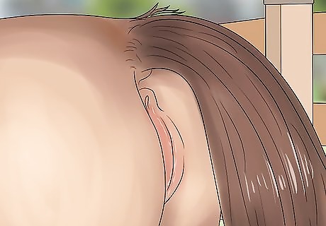 Wash the mare’s udder and vulva with warm, soapy water in early labor. To reduce the risk of bacteria being transferred to the vulnerable foal, it’s best to clean the mare thoroughly when you notice that she’s going into early labor. Fill a bucket with mild soap and warm water and gently wipe down the mare on her udder, around her vulva, and all along her hindquarters. Then, rinse the soap away thoroughly with clean, warm water. Using warm water will be more comfortable for your mare. If she’s not already there, move the mare to her birthing stall or the sectioned-off area in the pasture. Stay close if you plan to be present for the birth, as foaling can happen very quickly. Typically, a mare will successfully deliver her foal on her own, although in some cases intervention may be necessary.