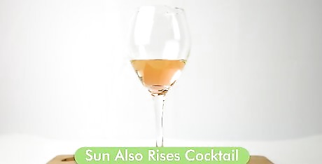 Shake up a Sun Also Rises cocktail. Combine all the ingredients in a martini shaker. Fill the shaker the rest of the way with ice, put on the lid, and shake the mixture vigorously. Strain the mixture into a martini or cocktail glass filled with crushed ice. Serve the cocktail with a wedge of grapefruit on the rim of the glass.