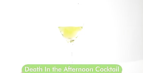 Make a Death in the Afternoon. Transfer the absinthe to a champagne glass. Hold the glass on a 45-degree angle and slowly pour in the sparkling wine. Holding the glass like this and pouring slowly minimizes bubbling. Add ice to chill the drink before serving if you like.