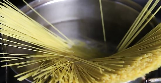 Cook the pasta. Put a large pot of water on the stove to boil and add 1/2 tbsp. (8 ml) of salt to the pot. You'll need about 6 quarts (5.5 L) of water to cook 1 lb. (0.45 kg) of angel hair pasta. Once the water has come to a boil add the angel hair pasta and stir. Begin timing the angel hair pasta once the water boils, and turn the heat down so the water simmers. You want to cook the pasta in simmering water for about 3 minutes or slightly longer if you like a softer pasta. Drain the pasta and either chill it under cold running water or toss it with a sauce and serve it immediately.