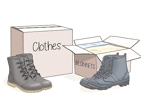 Pack blankets, a change of clothes, and sturdy shoes for each person. A change of clothes for each person could be a pair of pants, a shirt, and undergarments. Make sure each person has a pair of good shoes that they can walk or run in easily, and set aside sleeping bags or blankets for some extra comfort if you need to sleep somewhere other than your beds.Tip: If you don’t have extras of these items to put in your kit, make a detailed packing list so that if there is an emergency, you and your kids can refer to the list and quickly pack without worrying about forgetting something.