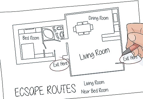 Review the escape routes from your home and neighborhood. For both at-home emergencies, like a fire, or local emergencies, like flooding, prepare multiple escape routes and walk through them with your kids. For example, there should be at least 2 escape routes from your home that you can take, if not more. Plot 2 to 3 routes to get from your house to the decided upon meet-up location in case you need to evacuate. To be extra prepared, print out maps of your town and a layout of your house and highlight the different routes that can be taken. This way, if someone is panicking and can’t remember where to go, they can look at the map. It’s also a good idea to plan out the routes you can take to your child’s doctor’s office or to the hospital.