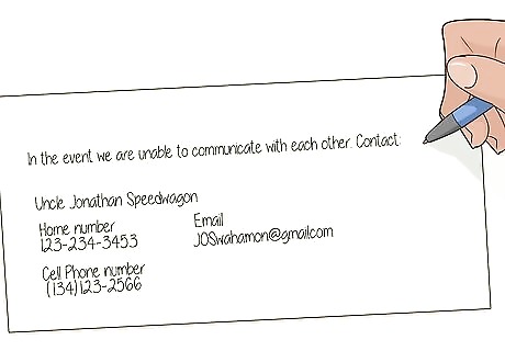 Pick 2 separate meeting places in case you and your child are separated. For the first location, agree to meet at home if you are not together when an emergency occurs. If, for some reason, you can’t reach your home, choose a secondary location in town where you will meet, like the library, the YMCA, or a school. If your child is older and out of town, like away at college, agree on a place where you will meet if there is a national emergency. For example, decide if you will travel to your child or if they will travel home, so that you don’t end up missing each other trying to find one another.