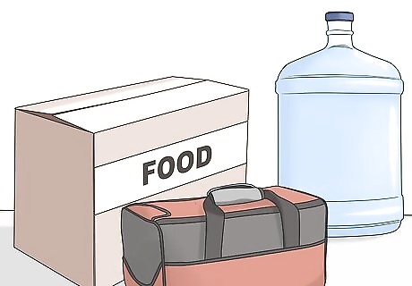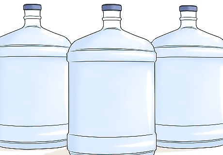 Accumulate bottled water to keep in reserve in case the water stops working. In general, you need about 1 gallon (3.8 L) of water per person for each day. Keep in mind that if you don’t have running water, you’ll also need the water for hygiene purposes, too. A great way to stock up on water is to simply buy a gallon each time you go to the grocery store. After 2 to 3 months, you’ll have enough water to last you and your kids several days. Don’t forget to stock extra water if you have family pets.