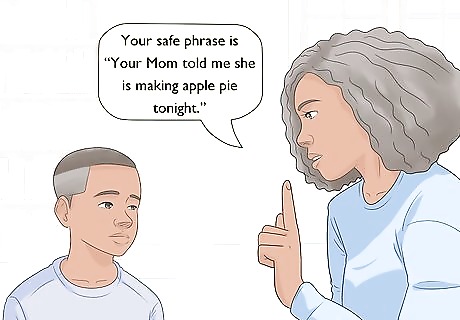 Agree on a safe word in case you aren’t able to pick up your kids. If there is an emergency situation, whether it’s personal or regional, you might not be able to make it to where your kids are. If this is the case, and if you’re going to send a family member or friend to get them, pick a word or phrase that they will have to give so your kid knows it’s safe to go with them. Make sure your child understands that they can’t share this word with other people. It’s only for family and for close friends that you’ve approved. This way, if someone tries to take advantage of an emergency situation, your child will know not to go with them. For example, if you’re sending a friend to pick up your kid, they could have to say something like, “Your dad told me he is making apple pie tonight.”