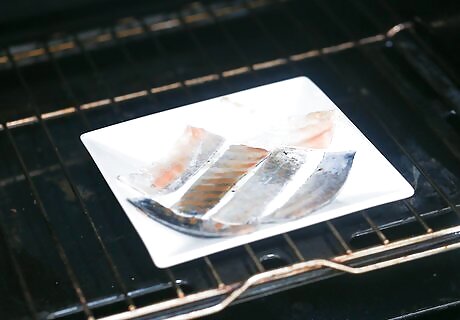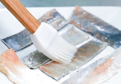Prepare salmon skins without the flesh in the oven. Preheat the oven to 375 degrees Fahrenheit (191 degrees Celsius). Skin the salmon fillet with a sharp knife. De-scale the skin with a fish scaler. Rinse the salmon under cool running water and pat dry. Line a baking sheet with parchment paper. Lightly brush olive oil on both sides of the salmon skin. Sprinkle your favorite seasonings on both sides. To keep it simple, simply sprinkle a little bit of salt. Place the salmon skin, shiny side up, on the baking sheet and bake for 10 minutes or until the skin is crispy. Allow the salmon skin to cool before eating.