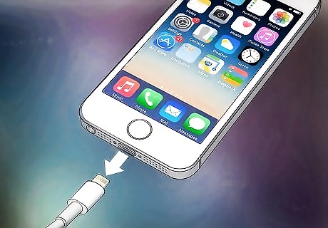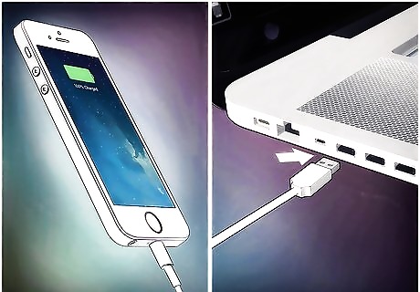 Attach your iPhone cable to your phone and computer. The large end of the cable should fit into your computer's USB slot, while the smaller end should fit in your iPhone's Lightning port (the charging port). Use the USB cable that came with your iPhone for best results.