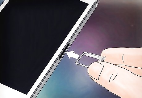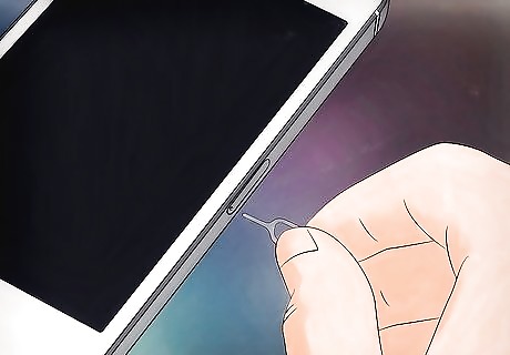 Insert one end of a paperclip into the hole. The SIM tray should pop open. You can also use any similarly-proportioned item, such as a needle, a pin, or a SIM removal tool.