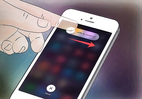 Swipe right on the "Slide to Power Off" text. This should be at the top of the screen; doing so will turn off your iPhone.