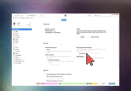 Click "Back Up Now" under the "Backups" section. This will back up your phone's data. When it comes time to restore this data, you'll use this backup to transfer your phone's data over to a new device. If you have automatic backups enabled, you don't need to back up again--your phone will have done so when you plugged it into your computer. Check the date of the latest backup under the "Backups" section to confirm that your phone's data backed up. When backing up your phone, you can choose either iCloud, which backs up your phone to your iCloud account, or "This computer", which saves your phone's data on your current computer.