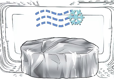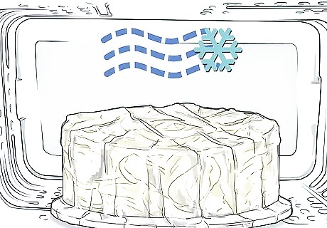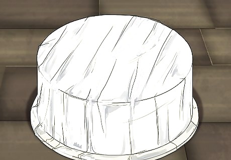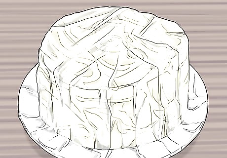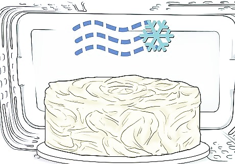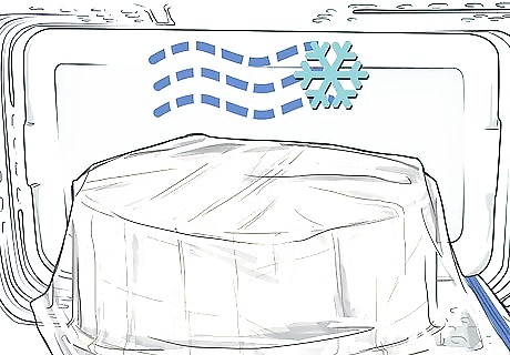 Cover the cake securely with plastic wrap. Take several long sheets of cling wrap and surround the cake completely. Before putting the cake back in the freezer, check that the plastic wrap is as tight as possible. The goal of the wrap is to keep any moisture from getting into the cake. If there’s any gaps or air holes within the plastic wrap, it could negatively affect your cake’s freshness. If the cake isn’t wrapped tightly, then other foul odors can potentially absorb into the cake.