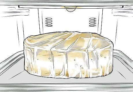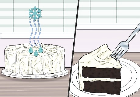 Defrost the cake when you’re ready to eat it. Place it on a flat surface at room temperature for 3-4 hours before serving it. You can also put your frozen cake in the refrigerator a day or 2 before you plan on eating it. Regardless, don’t unwrap the cake until it has defrosted completely.