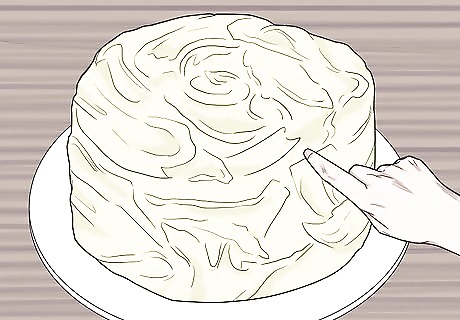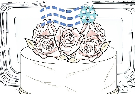 Place the cake in the freezer for about 15 minutes to stiffen the icing. Prevent damaging the frosting work on your cake by placing in the freezer first. Before taking it out again, set a timer for 15 minutes after laying your cake uncovered in the freezer. At this point, gently tap on the frosting to make sure that it’s stiff. Whenever you put the cake in the freezer, make sure that there are no nearby items that could fall on and otherwise damage the dessert.