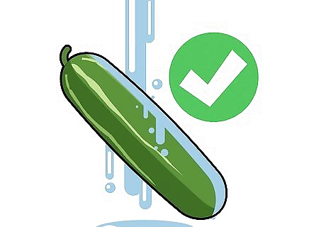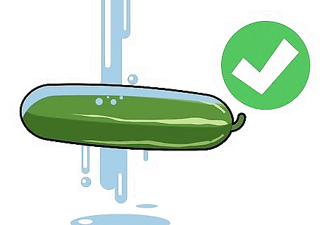 Wash the cucumbers. Washing gets the excess dirt and chemicals off, a necessary step even if you’re growing your own vegetables. Chemicals can still seep into the dirt and water supply, getting onto your vegetables. You don’t need a special vegetable soap. Tap water gets rid of 98% of the chemicals and bacteria on vegetables. If you’re concerned about your tap water quality, use distilled water to wash your vegetables.