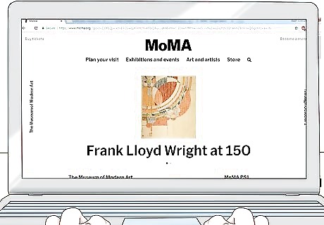 Browse the museum's or artists' collections online. Depending on which museum or gallery you're visiting, you might be able to preview the collection you're seeing on a website. This gives you more time to look at and think about the pieces you'll be seeing. And you can do so without the pressure of feeling like you have to contribute to the conversation happening around you. For example, if you are about to visit MOMA (the Museum of Modern Art in NYC) you could do some research about modern art in general and research some of the pieces in the gallery.