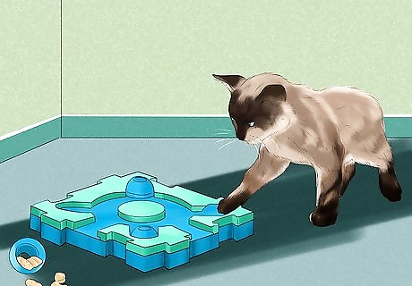 Give your cat plenty of toys. Instead of allowing your energetic kitten to take part in potentially dangerous activities, provide your kitten with plenty of appropriate toys. There are a variety of cat toys available from pet supply stores. In many instances kittens will happily play with toys by themselves. Always supervise your kitten while it plays to keep it from ingesting any pieces that become loose.