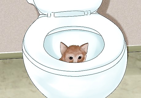 Avoid giving a kitten free range of the house. There are certain, potentially dangerous areas in your home that should remain off limits to your kitten. For example, your kitten may fall into the toilet if the seat is left up. Alternatively, it may choke on a small bone while rustling through the garbage. As a result keep certain doors closed and secured so that your kitten can not enter. You should also prevent your cat from jumping up onto high surfaces such as counter tops or tables. Similarly, any cleaning products should be kept in a locked cupboard.