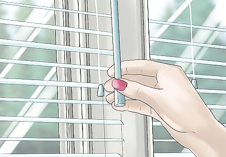 Pull up blinds and secure all cords. Kittens may also try and play with the cords that hang down from your blinds or window coverings. Try tying up these cords so that they are out of your kitten’s reach. Your kitten could strangle itself if it gets wrapped up in the cord. Alternatively, your kitten could choke on the plastic end of the cord after chewing it off.