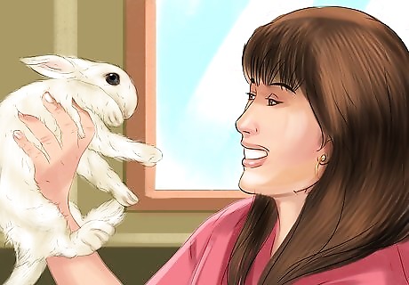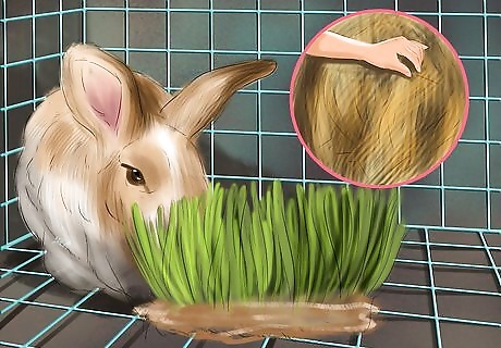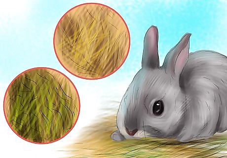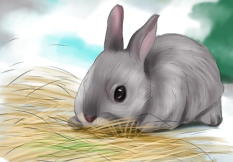 Let your rabbit feed freely on hay. Good quality hay should be provided at all times. There should always be plenty available for the rabbit to eat.