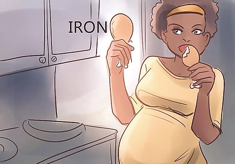 Ensure the child's mother eats a diet high in iron during pregnancy. In the womb, babies get their iron supply from their mother. That means that newborns will have iron stores for their first 6 months of life if they get enough before they're born. Pregnant mothers should eat red meat and other iron-rich foods throughout pregnancy like poultry, lentils, beans, green leafy vegetables nuts, dried fruit, eggs, and enriched grains. If you're pregnant, focus on getting enough iron by discussing your diet with your doctor - you can take supplements if they suggest it. If you will be caring for another person's child, consider having a conversation about prenatal diet with the baby's biological mother. Iron deficiency during pregnancy increases the chances that the baby will be born early or underweight. These are both risk factors for iron deficiency anemia for infants.