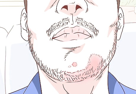 Look at facial hair for ringworm. Tinea barbae is ringworm found in a man's facial hair. It can cause a deeper infection in the follicles of a man's beard and may result in permanent hair loss from scarring with follicular infection. Symptoms include a reddened area on the skin that is itchy and can become scaly. Depending upon the location you can see the classic ring characteristic with redder border and more flesh colored interior. The man will also lose hair growth with an active fungal infection. You should also look for dermatophytids (a rash). This rash affects another part of your body and can accompany facial ringworm. You may experience an itchy bumpy rash on your fingers which is related to an allergic reaction to the fungus. This does not result from touching an infected area.