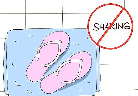 Take care in public places. Since fungal infections are contagious, you can get them from exposure to skin cells that have the infection. Try to reduce your exposure to public areas where other people with fungal infections may have been. If you use public locker rooms, showers, or pools, wear flip flops. You shouldn't ever share towels or combs in the locker room either. Never touch other people's infections or share shoes.