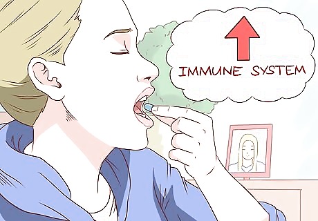 Boost your immune system. You're more likely to get a fungal infection if you have a depressed immune system. To improve your immune system, take a daily vitamin supplement and consider taking a probiotic. Try to eat a balanced diet high in healthy fats and reduce your carbohydrate intake. You should also stay hydrated by drinking water. Your urine should be very light yellow in color. Your immune system may also benefit from 8 hours of sleep a night. Your immune system may not be in the best shape, even if you don't have a medical condition or are taking medications that might depress it. This makes it important to strengthen your immune system.