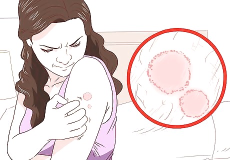 Check your body for ringworm. Tinea corporis is a ringworm infection which appears on the body, but not the scalp, inside a beard, on the feet or in the groin area. It begins as a small raised red area that looks like small pimples. It is itchy and quickly becomes scaly. The rash will slowly take on a ring shape classic to ringworm with a redder exterior border and a flesh colored middle. You should also look for dermatophytids (a rash). This rash affects another part of your body and can accompany body ringworm. You may experience an itchy bumpy rash on your fingers which is related to an allergic reaction to the fungus. This does not result from touching an infected area.