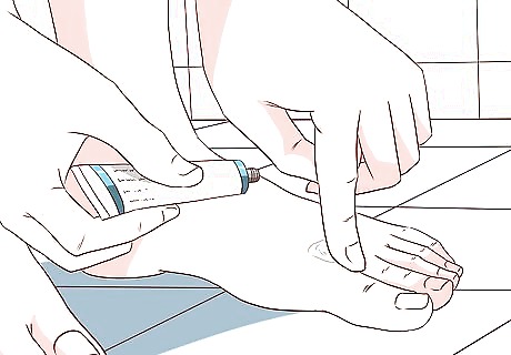 Treat athlete's foot. Over-the-counter antifungal powders or creams are effective in controlling or eliminating the infection. Look for products that contain miconazole, clotrimazole, terbinafine, or tolnaftate. Follow the packaged instructions and apply the medication for at least 2 weeks and an additional 1-2 weeks after the infection is cleared to prevent it from returning. Wash your feet twice a day with soap and water. Be sure to dry your feet and between the toes, then put on a clean pair of socks after each washing. Wear shoes that are well ventilated and made of natural materials. You should also alternate your shoes everyday to give them time to dry out thoroughly. If you have athlete's foot that isn't responding to home treatment, your doctor may prescribe oral medications after testing your infection by taking a culture.