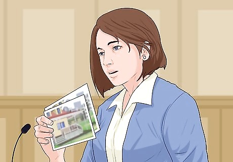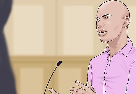 Testify on your own behalf. You are an important source of evidence at any trial. In a trespass lawsuit, you can use your testimony to highlight facts which show implied consent. For example, you can testify as to what the landowner did or said that you interpreted as consent. When you testify, remember the following tips for being a credible witness: Listen closely to the question and answer only that question. If you don’t understand the question, ask for clarification. Think before answering. Although you will feel nervous testifying, you should try not to rush. Instead, pause and consider your answer. Speak clearly. Keep your voice up and answer in complete words, not gestures or sounds like “uh huh.” Don’t guess. Also be careful providing estimates. Always tell the truth. It is your best defense.