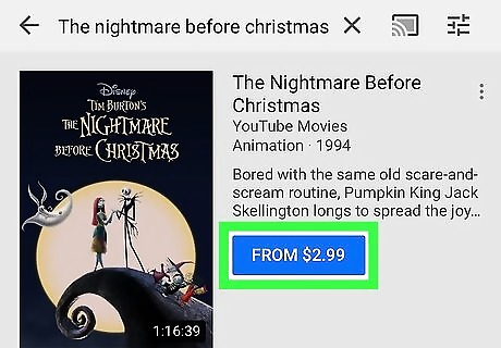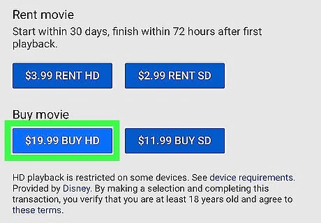 Tap the blue button with the movie price. This will open the purchasing options Prices will vary depending on the movie you’re buying.