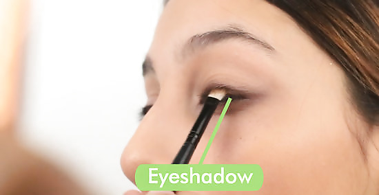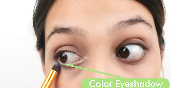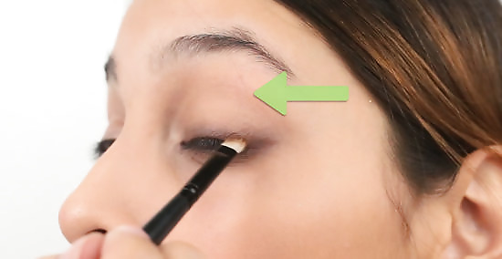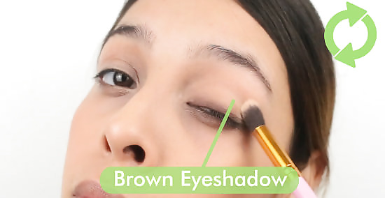 Set your eyeliner with brown eye shadow. Use an angled eyeliner brush to draw a line of shadow on top of your smudged eyeliner. Sweep a light pink eye shadow along the outer edges of your lid. Extend the pink shadow from the crease in your lid up to your brow bone. This will open up your eye and make it appear larger.
