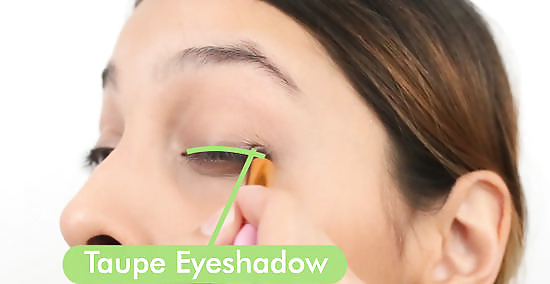 Apply taupe eye shadow along your upper lash line. Extend it to the crease in your eyelid. Draw a line from the middle of your upper eyelid to the outer corner with your eyeliner. Make the line a little thicker at the outer edge of your lid and have it taper in toward the center. Make your eyes seem larger by only lining the outer ½ to ⅔ of your upper lid.