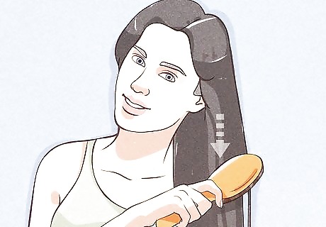 Start by brushing out your hair. Make sure it has all, or mostly all, of the knots out. A good tactic for this is to start at the bottom and work your way up, gently brushing through. A messy bun is easier to achieve if your hair has not been washed for a day or two, but if conditioning makes it easier to get the knots out, you can do that also.