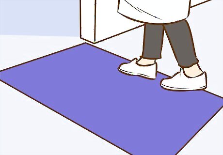 Clean your shoes. As you enter changing room 1, there will be a sticky mat. This mat is used to trap the particles on the bottoms of your shoes and ensure that as few as possible are brought into the changing room. You should only be wearing inside shoes into the changing room.