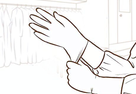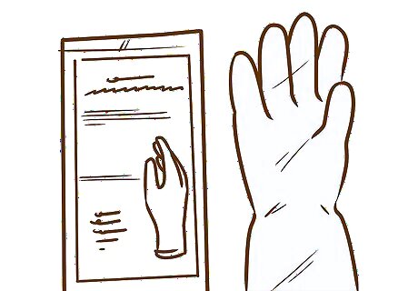 Choose the right gloves. Your gloves should come from a plastic container. They should be free of powder and should not allow powders or liquids to be transferred. If you are working with solvents, you should be sure that your gloves are appropriate for that particular solvent (will not react with/be degraded by the solvent). Glove manufacturers will provide this information for all of their gloves.