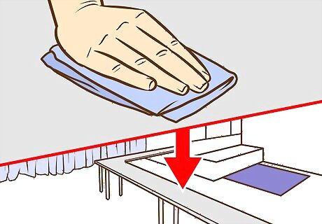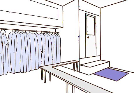 Ready the passover bench. The passover bench separates the “dirty” side of the changing room from the “clean side.” Disinfect this bench before proceeding. Then, lay the overalls and boots on the passover bench until you are ready to put them on. Note that the overalls and boots will also be in individually wrapped plastic bags.