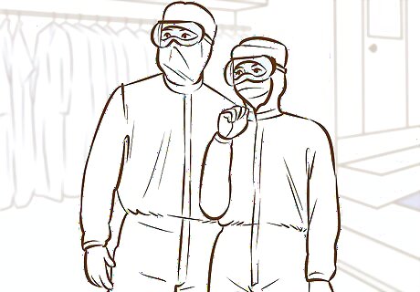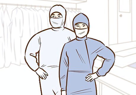 Insulate your torso and legs from the environment. Hairnets and gloves are a good start, but they aren’t sufficient to keep a cleanroom clean. The most common way that people contaminate their environment is by leaving behind skin flakes. Skin flakes are small particles of skin that are shed from your body everyday. To combat these tiny contaminants, your torso, arms, and legs must be contained in coveralls. The coveralls also protect your body from the materials in the cleanroom.
