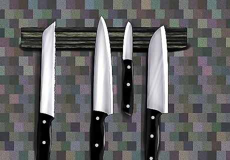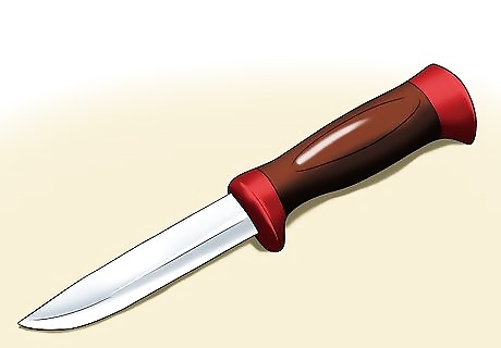 To slaughter, attach two stout cords to a bar about 2 feet (0.6 m) above your head and about 2 feet (0.6 m) apart. The lower end of the cords must have a slipknot on each of them. You will need a 12" to 18" length of ⁄2 inch (1.3 cm) pipe to kill the animal. You will also need a keenly sharpened knife to skin and eviscerate the animal. You will need a pan to place the carcass of the animal in after you have skinned and eviscerated it.