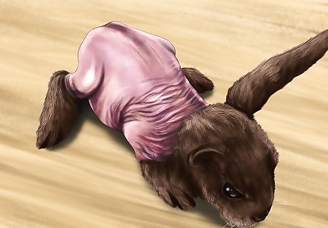 Skin the animal according to whether you want to save the pelt or hide. Rabbits are very easy to skin. If you don't want to save the hide, simply cut a slit in the small of the back and pull the lower part down and off.