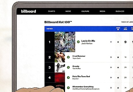 Follow music charts to discover new songs and artists. If you want to discover the most popular songs in the United States, check out the Billboard Hot 100 chart each week to see what’s trending. It tracks all genres and is ranked by physical and digital sales, online streaming, and radio play.