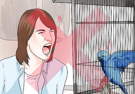 Do not physically punish your parrot. Parrots do not respond to punishment. Punishing your bird will not solve behavior problems and will only increase levels of stress. Always treat your bird gently and with respect, slowly working to overcome problem behaviors and to keep things calm and relaxed. Never hit or strike your bird. Do not shout at your parrot. Don't cover your bird's cage when it is misbehaving. Only positive reinforcement will alter your bird's behavior.