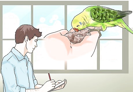 Look for feather plucking. When parrots become extremely stressed out, they will break or pull out their feathers. This stress coping method can leave your parrot open to infection and can cause dangerous amounts of blood loss. If you notice any feather plucking, visit your veterinarian to learn the causes and to discover how you can put an end to it. Some cases of feather plucking can turn into self mutilation if left unchecked. Causes for feather plucking can vary greatly from case to case. You'll need to work with your veterinarian to learn more about your bird's unique situation.