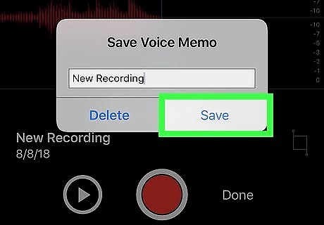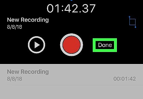 Tap the Done button. This option is in the lower-right corner of the Voice Memos app, next to the Record button. It will allow you to save your voice memo to your library.