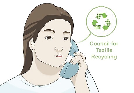 Contact the Council for Textile Recycling to recycle scrap textile. If your clothes have fallen apart or you have strips of fabric or textile, you can recycle them by contacting the Council for Textile Recycling to find a donation center or a drop-off location to bring your clothes to. Visit their website at weardonaterecycle.org to find a location near you. Some donation centers will only accept certain fabrics, so make sure you can recycle your clothes with them before you drop them off.