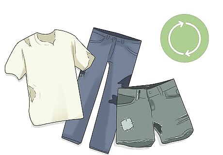 Recycle clothing that is in poor condition. Your clothes that are just too-far-gone to be worn by someone else can still be reused to make items like car seat stuffing, home insulation, and can be recycled to make new fabric. There are recycling programs that will accept many different clothing items to be repurposed and reused.